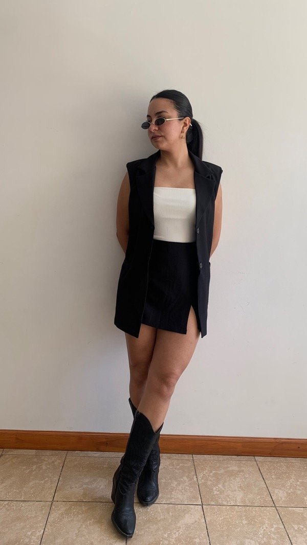 Chaleco sastrero forrado por dentro, con hombreras, bolsillos delanteros y botones.