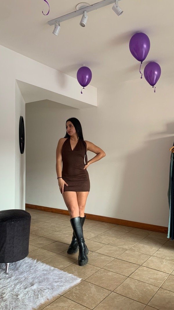 Vestido marilyn de modal gamuzado con lazo para atar en el cuello.