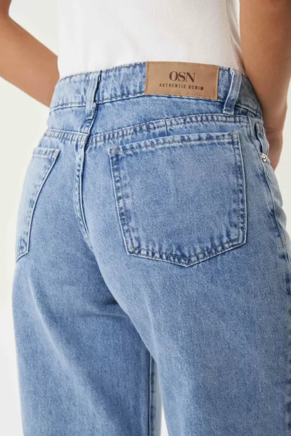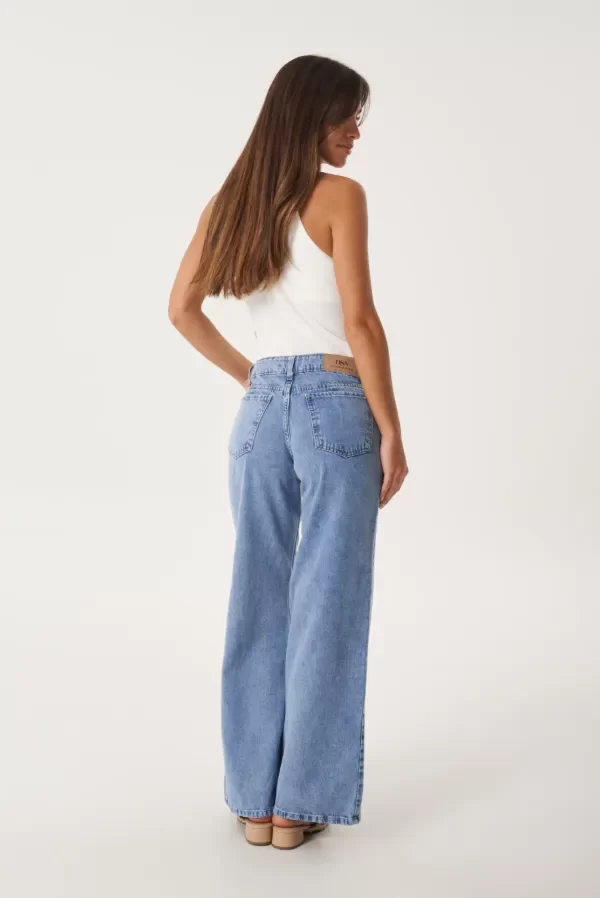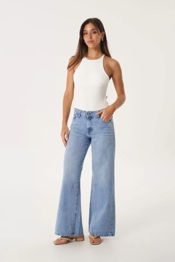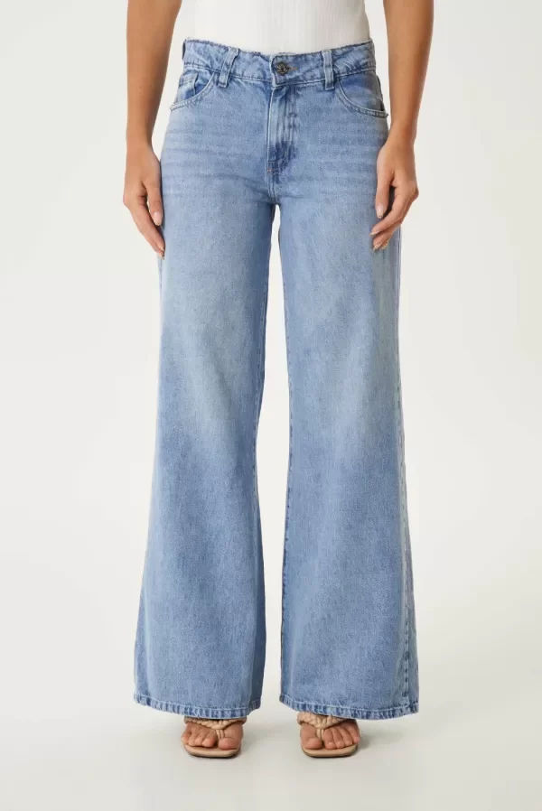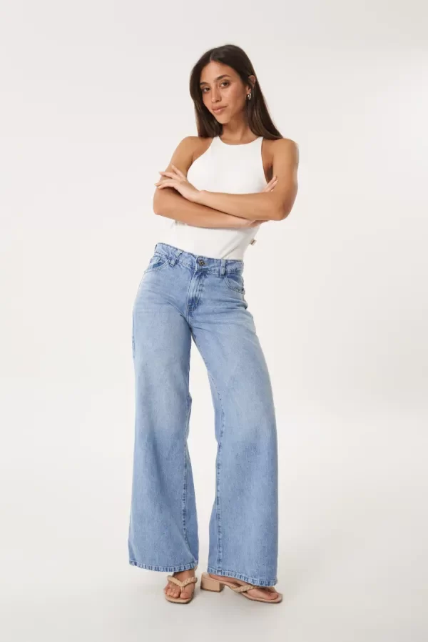 Jeans wide leg celeste liso. Rígido, excelente calidad.