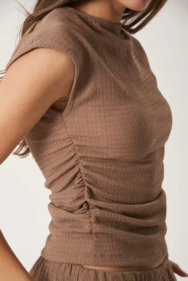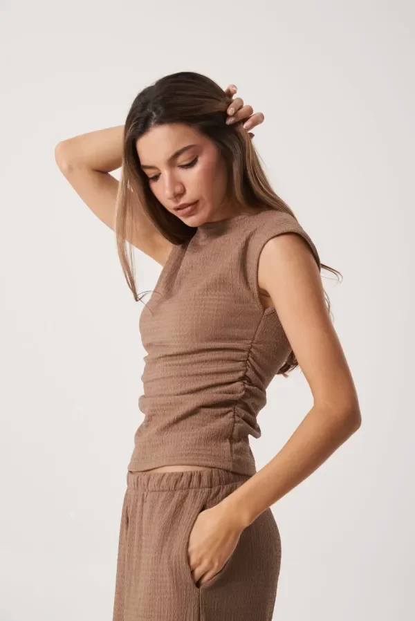 Remera manga japonesa con elastico en laterales, tela hawai.