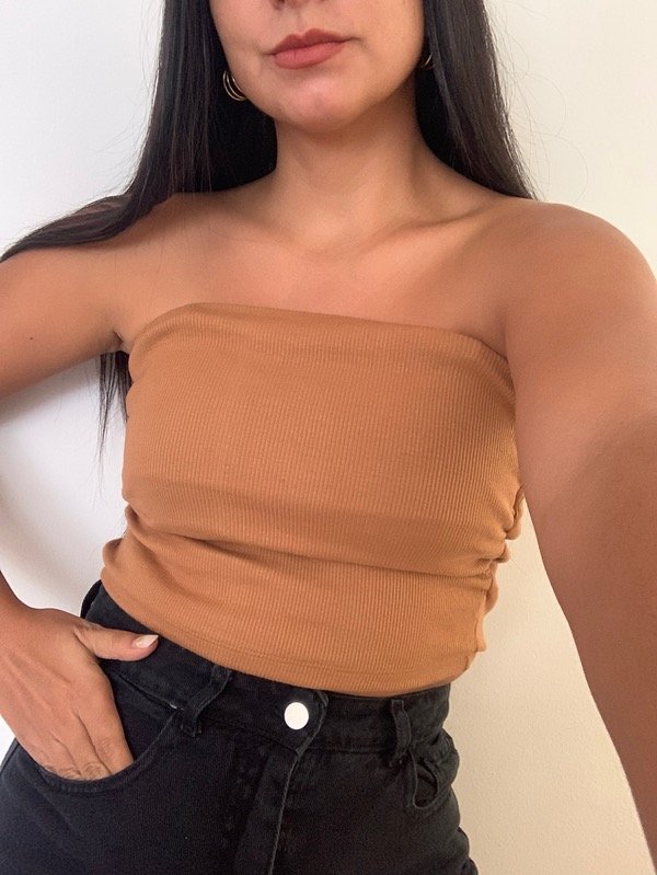 Top straple liso, de morley grueso. Elastizado, con arruches a los costados.